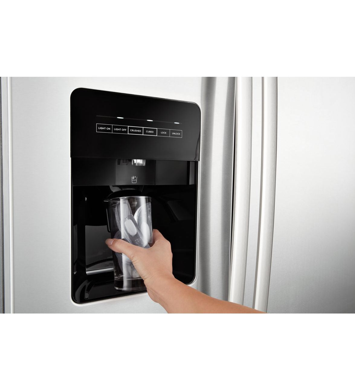 The easy-to-access Dual Pad External Ice and Water Dispenser with EveryDrop Water Filter keeps the freshness flowing. Dual pads give you two different spots to fill up on ice and water, so switching from one to the other is as easy as the push of your cup.
