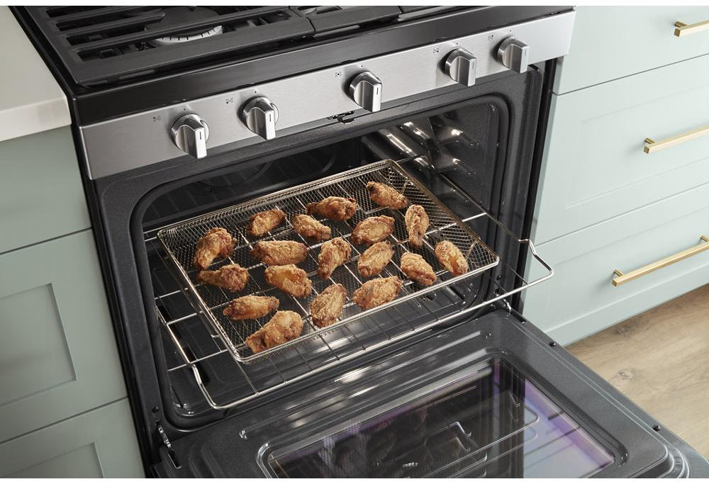 The Whirlpool Air Fry Mode utilizes a special tray along with a convection fan to air fry your food, giving you crispier, healthier food more quickly than ever before. Whether you’re baking, broiling or simmering, you’ll have the ultimate control over your cooking.