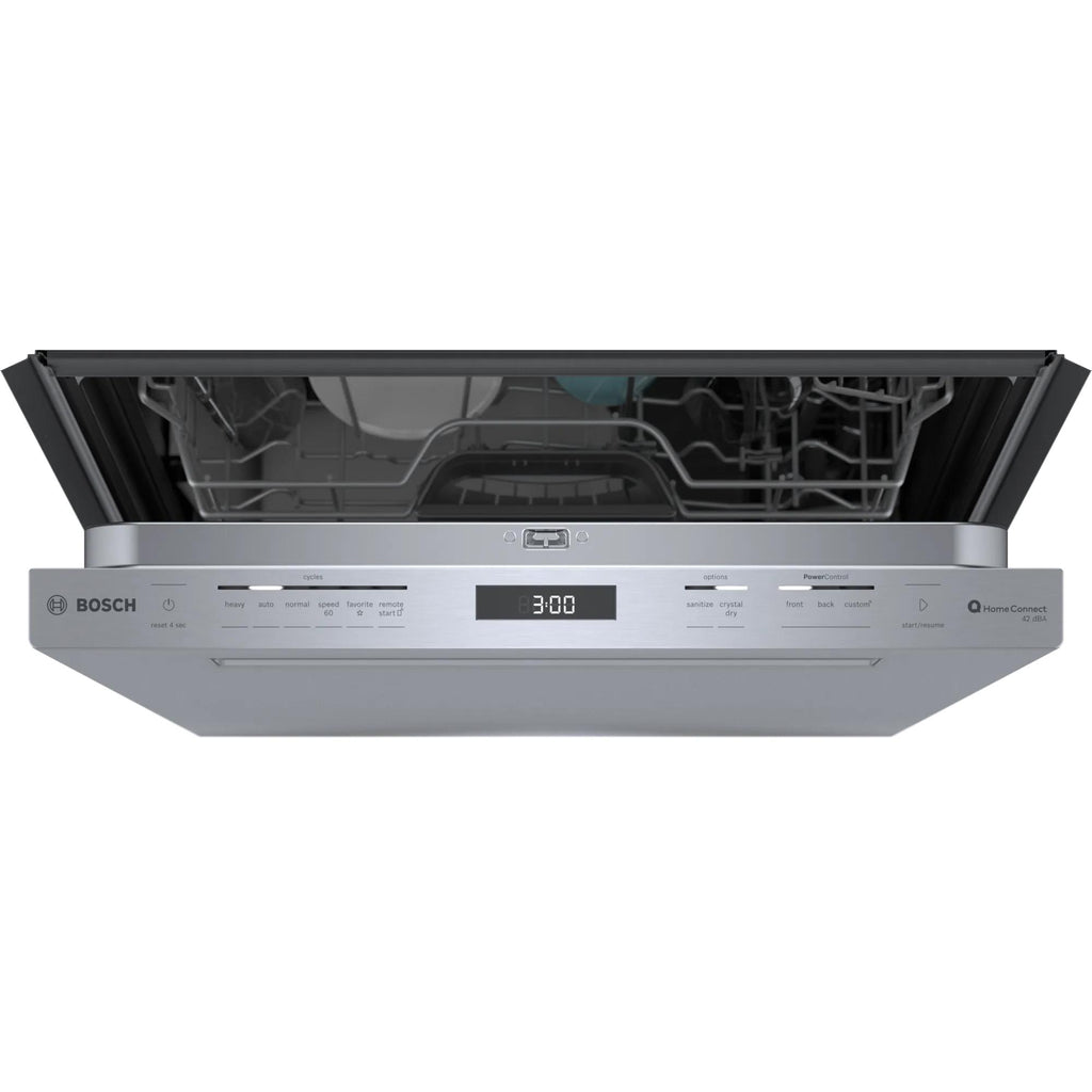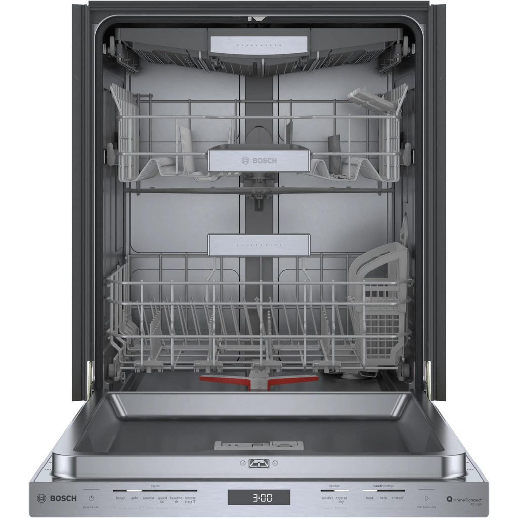 ×Bosch 800 Series top control dishwasher features CrystalDry™ drying system, a flexible 3rd rack, Home Connect® and can accommodate up to 16 place settings.