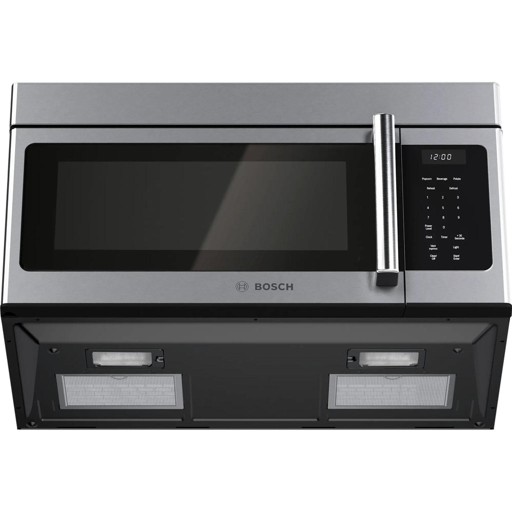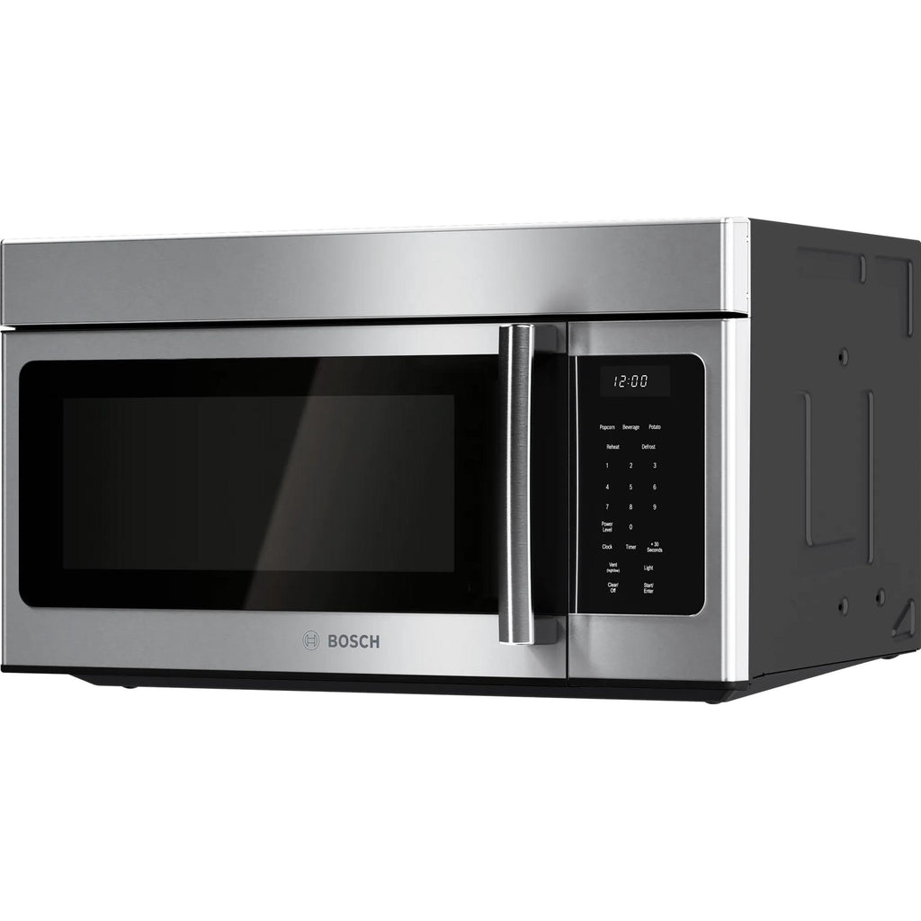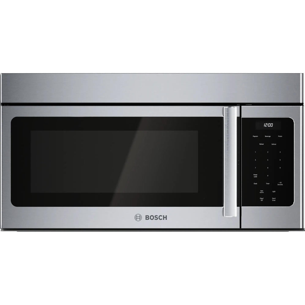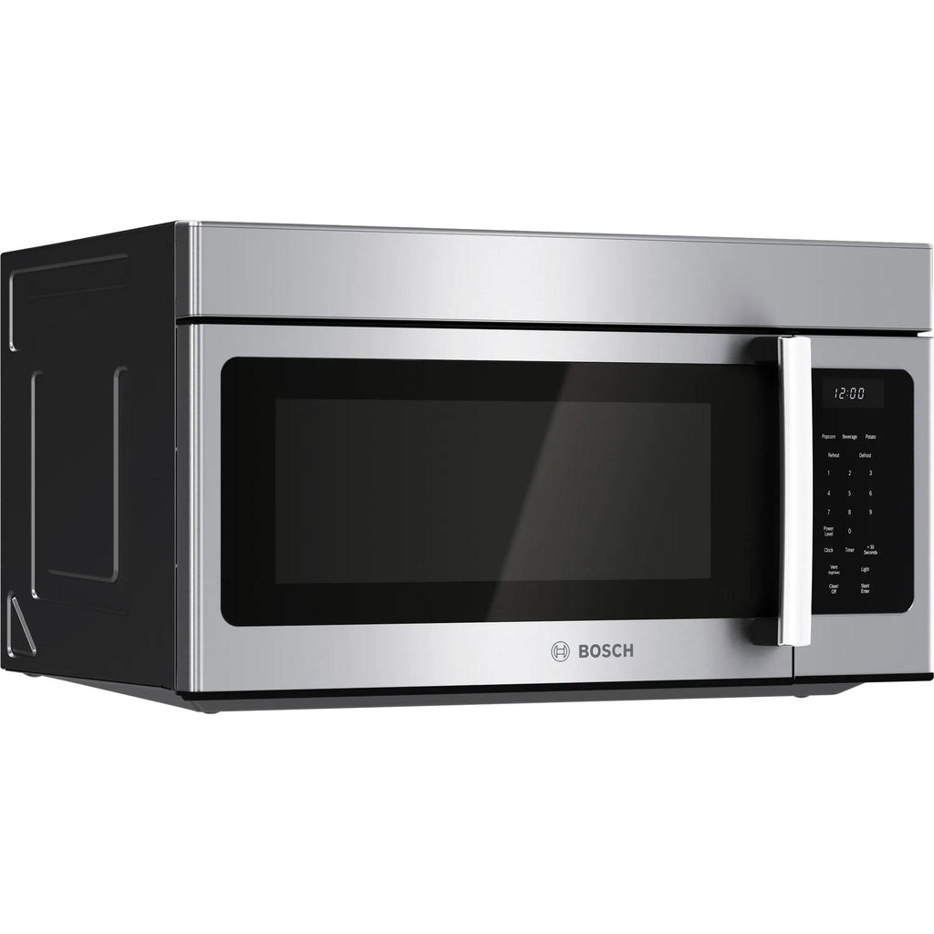 ×This Bosch 300 Series 30" over-the-range microwave with Left Side Opening Door. It features surface lighting to illuminate your range or ambient kitchen lighting, a large 1.7 cu. ft. capacity to fit a variety of dishes, 300 CFM vent efficiently that removes steam, smoke, grease and odors. This microwave offers a variety of modes including beverage reheat, potato and popcorn for easy and fast results.