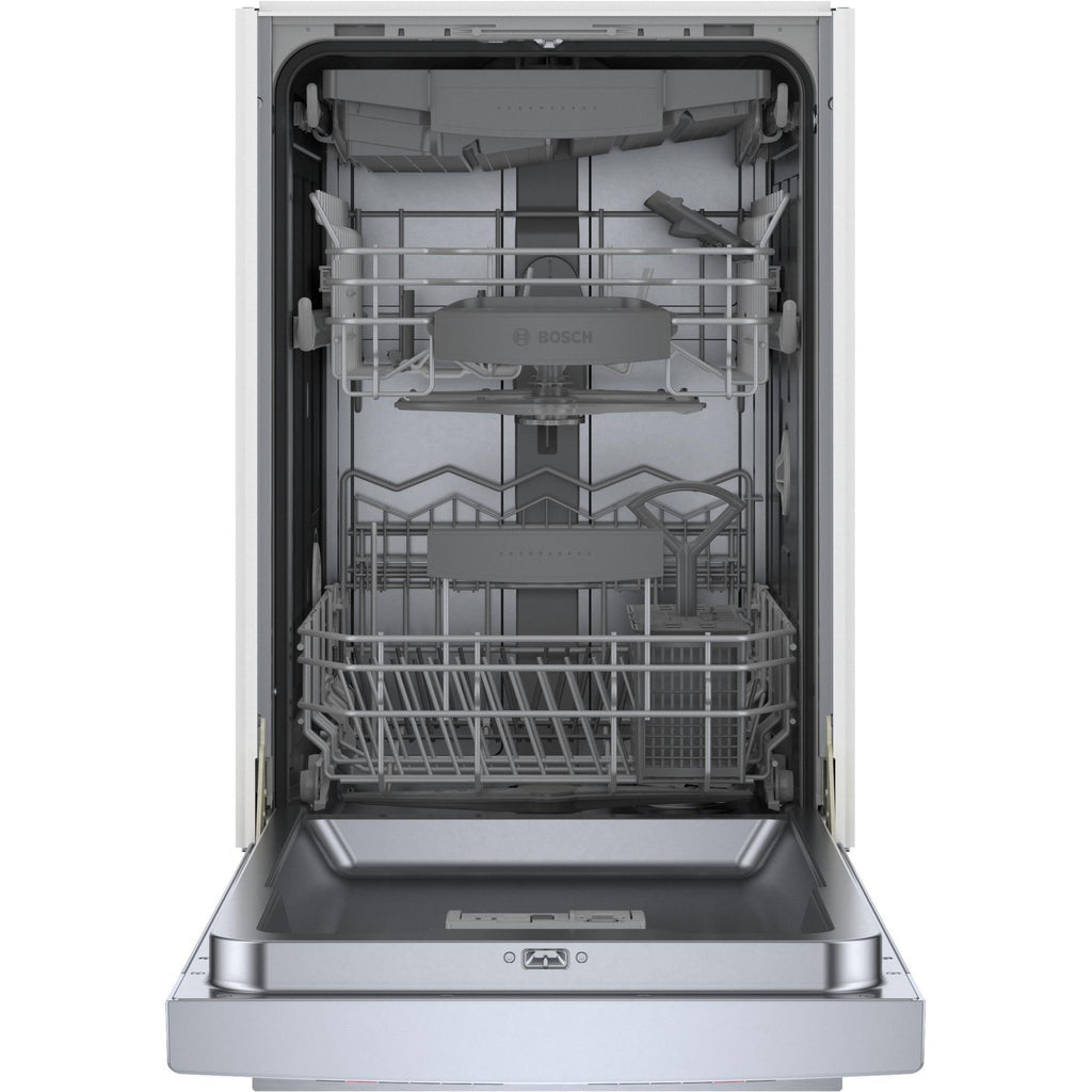 ×18" Bosch 800 Series built-in, recessed handle, front control Dishwasher featuring ADA-compliant, PrecisionWash® , CrystalDry™ and Standard 3rd Rack. Bosch PrecisionWash®, simply start your dishwasher and walk away. Intelligent sensors continually scan and check the progress of dishes throughout the cycle, and powerful, precision spray arms go to work targeting every item of every load. So when your dishes are done, so are you.