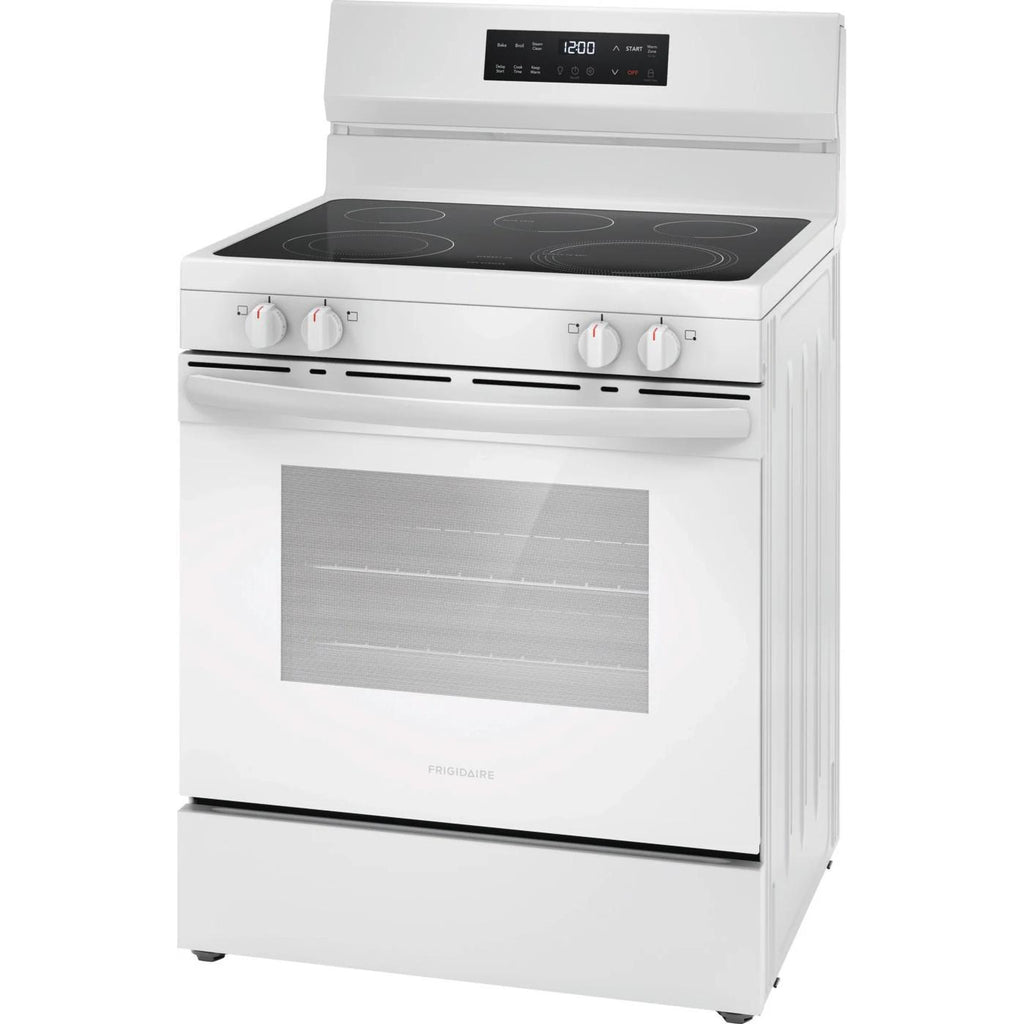 ×Frigidaire 30-inch freestanding electric range features EvenTemp™ cooktop element, Even Baking technology, steam cleaning option and a total oven capacity of 5.3 cu. ft.