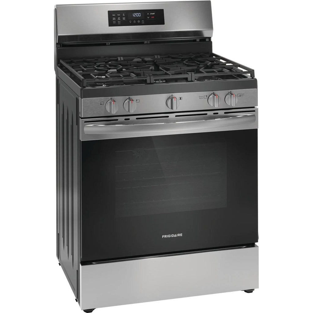 ×Frigidaire 30-inch gas range features 5 burners, Air Fry technology and a total oven capacity of 5.1 cu. ft.
