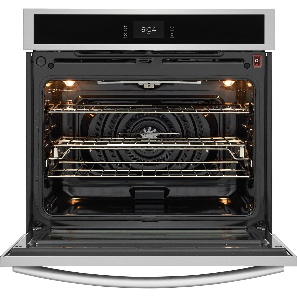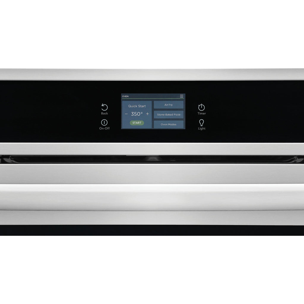 ×The Frigidaire Gallery 30" Single Wall Oven with Stone-Baked Pizza, is the only wall oven designed to reach temperatures of 750?F+, the high-heat needed to create authentic restaurant-quality pizzas, in as little as two minutes - right in your oven. In addition to Stone-Baked Pizza, the oven offers over 15+ different ways to cook like No Preheat, Air Fry, Slow Cook, Steam Bake, Steam Roast, Air Sous Vide, Convection Roast, Convection Bake, Bread Proof and more! Also includes a temperature probe, a premium touch screen digital control panel and our fingerprint resistant, Smudge- Proof®Stainless Steel finish.
