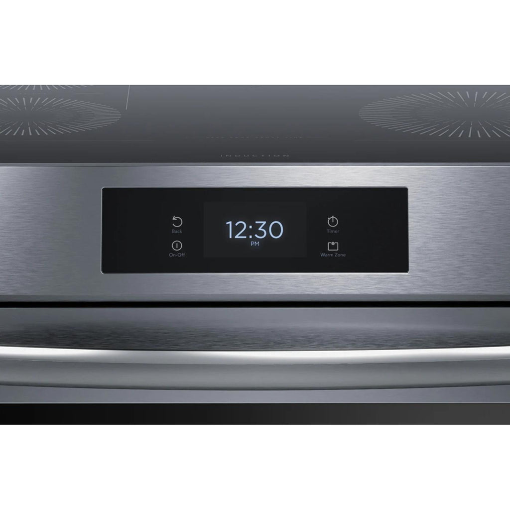 ×Frigidaire Gallery 30'' Front Control Induction Range with Total Convection and a 6.2 cu. ft. Capacity. Total Convection gives you maximum versatility in the kitchen, powering cooking modes like Air Fry, No Preheat, Slow Cook, Convection Bake, Steam Bake, Convection Roast, Steam Roast, Air Sous Vide, Bread Proof, Dehydrate and more! Unlike traditional electric and gas cooktops, induction only heats the pan and the food in it, so the area around the pan stays cooler, allowing you to clean up spills and splatters while you cook.