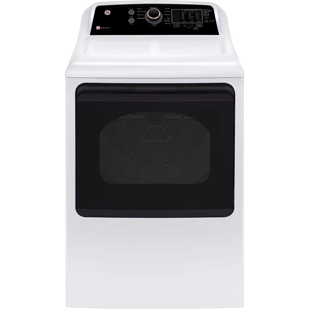 ×GE 7.4 cu. ft. electric dryer with digital display.