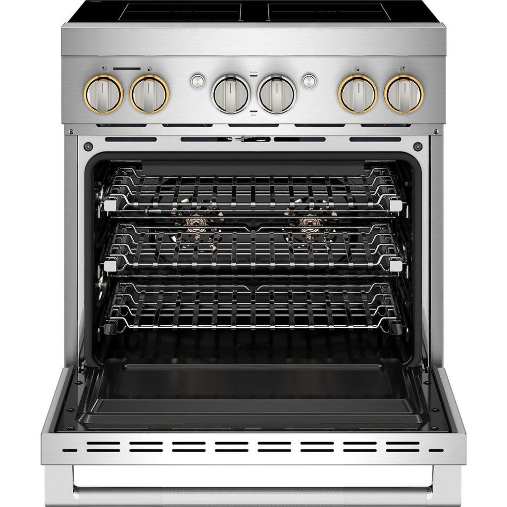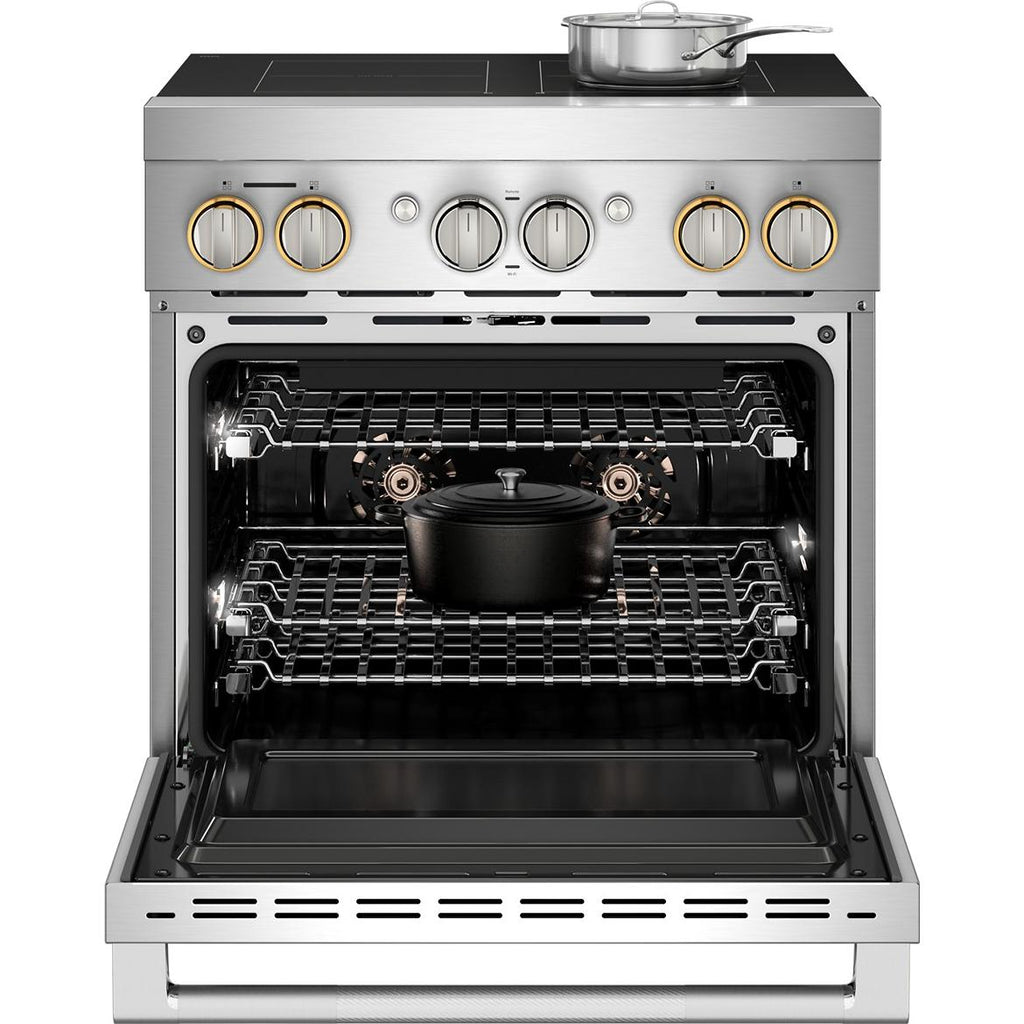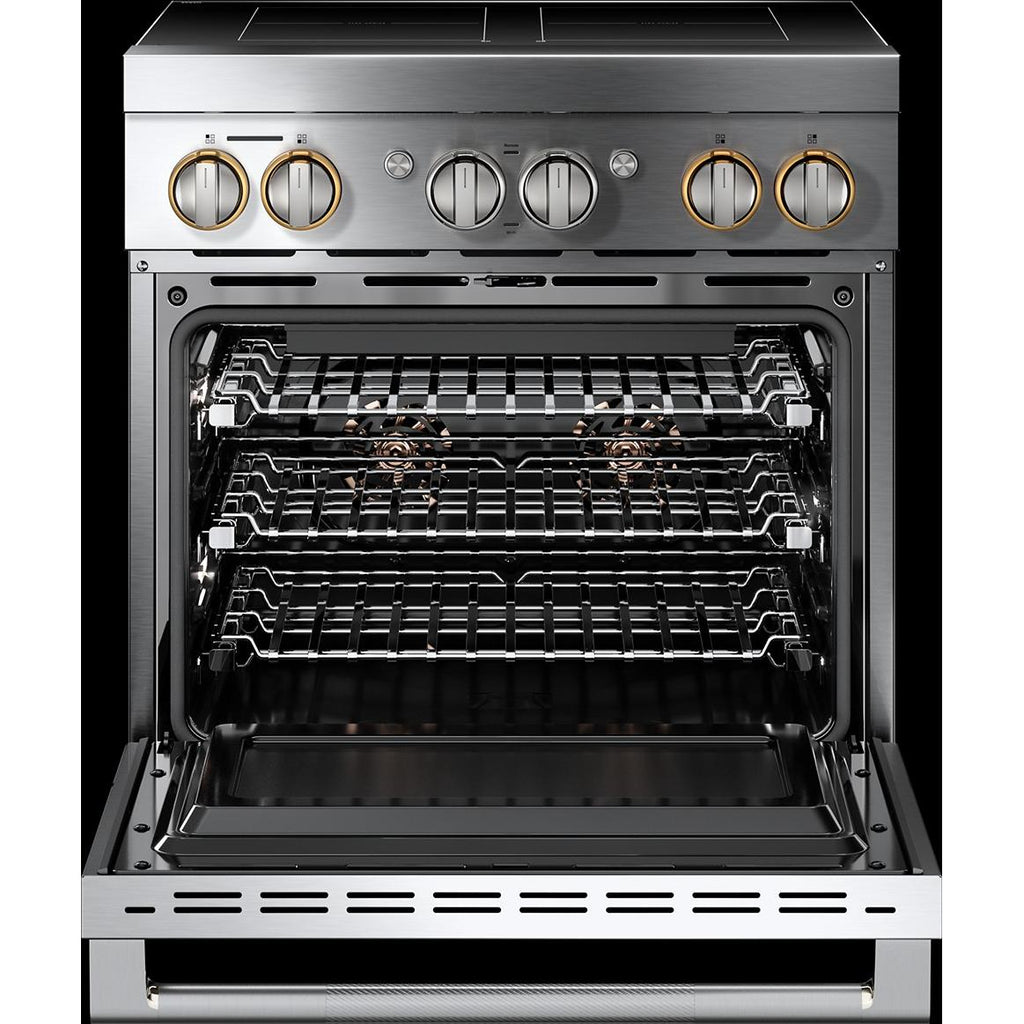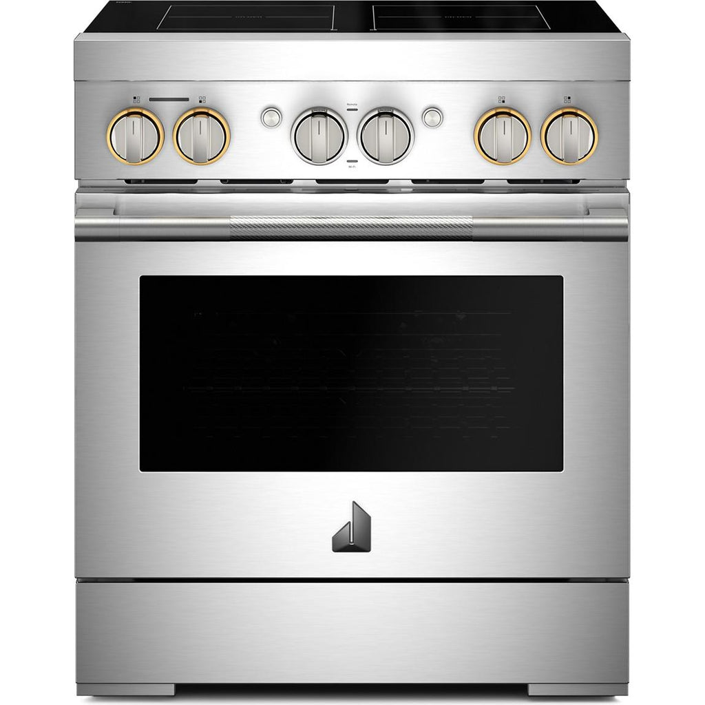 ×JennAir RISE™ 30-Inch Induction Professional-Style Range. Experience precision and power with knob-controlled induction cooking, Flex-Choice™ Zone30 Featuring Assisted Cooking, remote access via the Culinary Center, and Dual-Fan True Convection, this range delivers professional results with modern convenience.