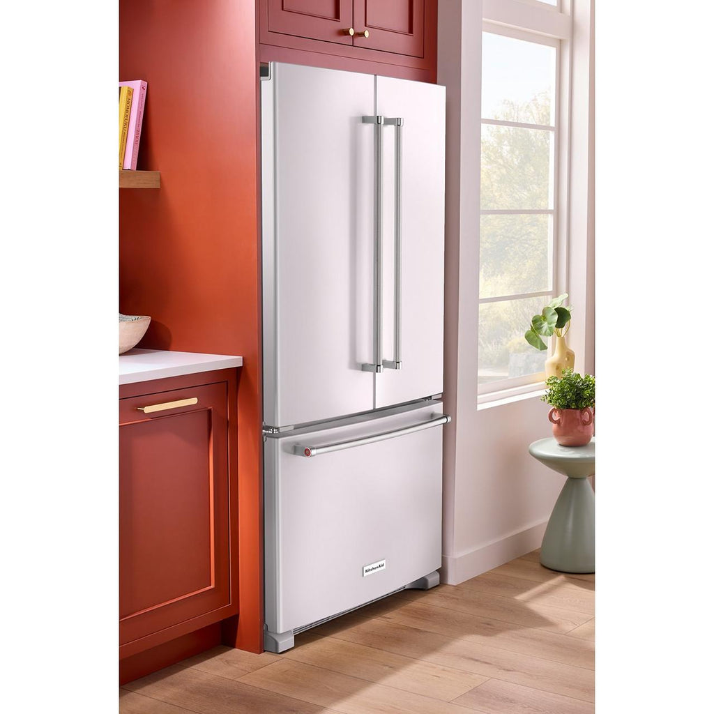 ×Enjoy freshness within reach. This KitchenAid® counter-depth french door refrigerator features an interior water dispenser to keep the outside looking sleek. Get customizable storage with an adjustable wood-look nesting shelf and convenient space for wide items with a full-width pantry drawer. And the counter-depth design allows the refrigerator to fit nearly flush with surrounding cabinetry, offering a built-in look and more room to move in your kitchen.