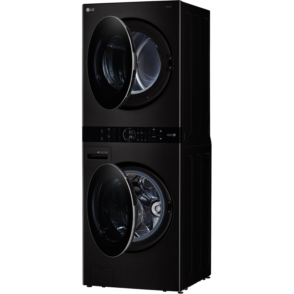 ×This LG stacked washer and dryer laundry center features TurboSteam™ Technology, Wi-Fi connectivity, 6 wash/dry programs and TurboWash™ 360 Technology.