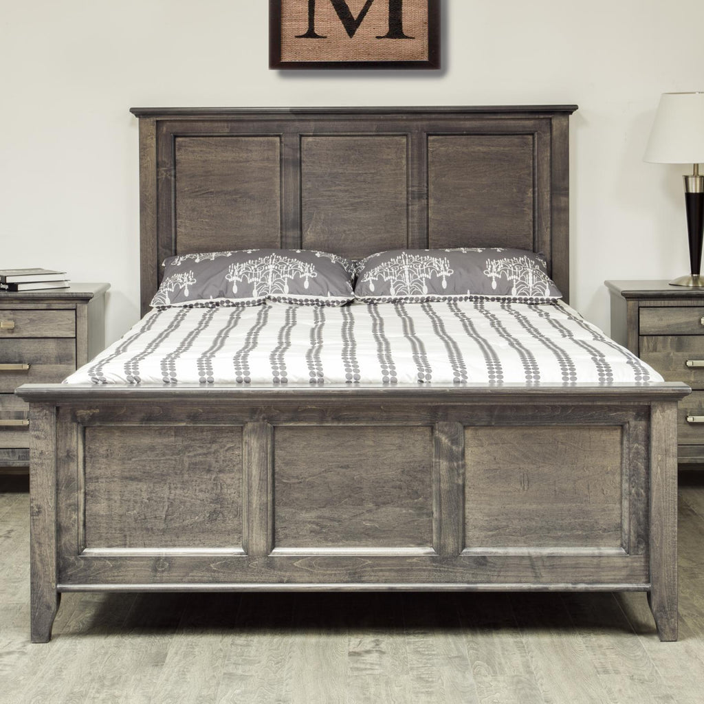 ×The Acer Queen Panel Bed features a panel headboard and footboard design, tapered feet, and a slate finish.