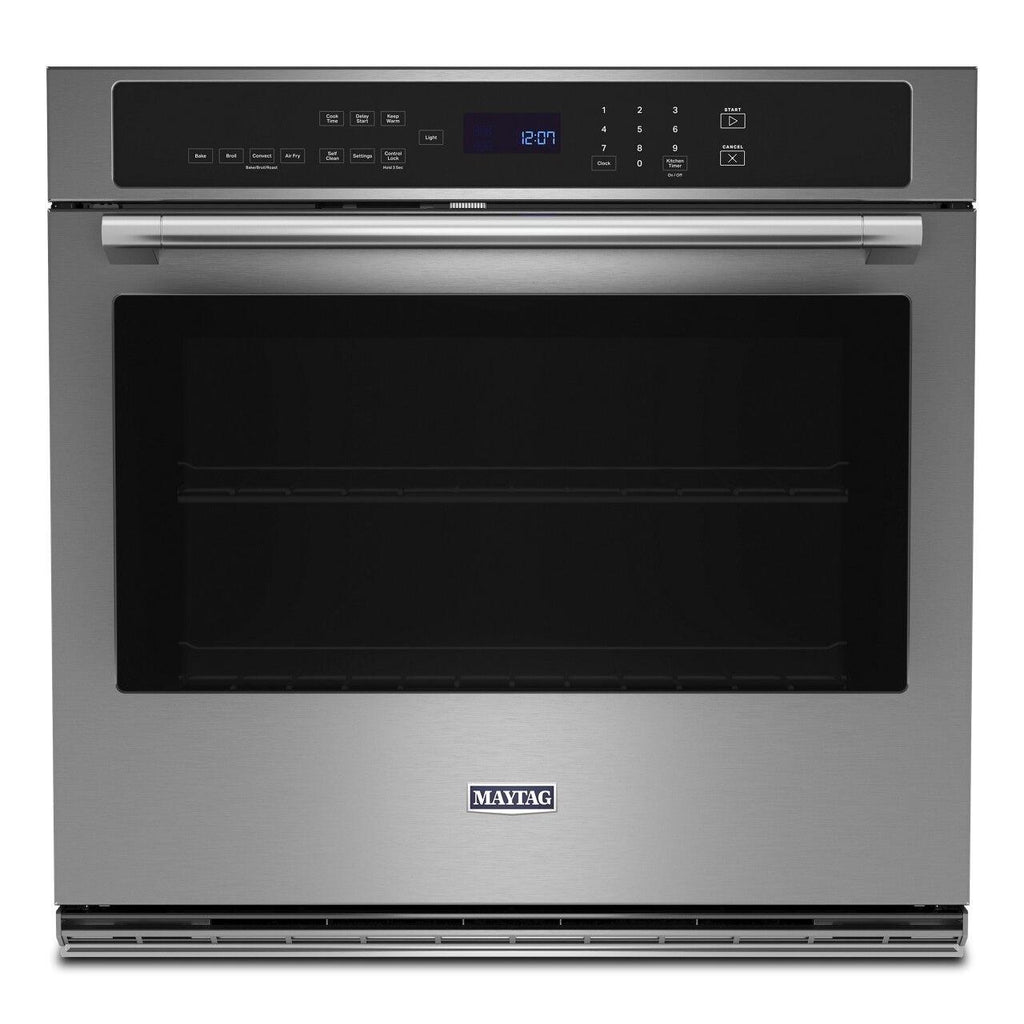 ×Cook what you want, when you want it in this Maytag® 30 inch single wall oven with air fry. This wall oven air fryer combo is ready for whatever recipe you throw at it, backed by convenient features like No-Preheat Air Fry, True Convection and Variable Broil. Get quick, crispy results with No-Preheat Air Fry, even heat baking with True Convection and the char you want with Variable Broil.