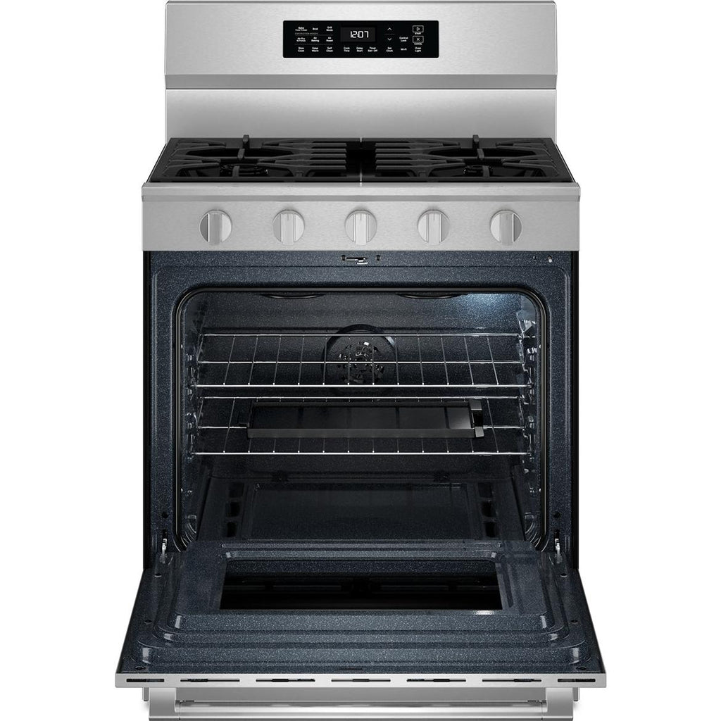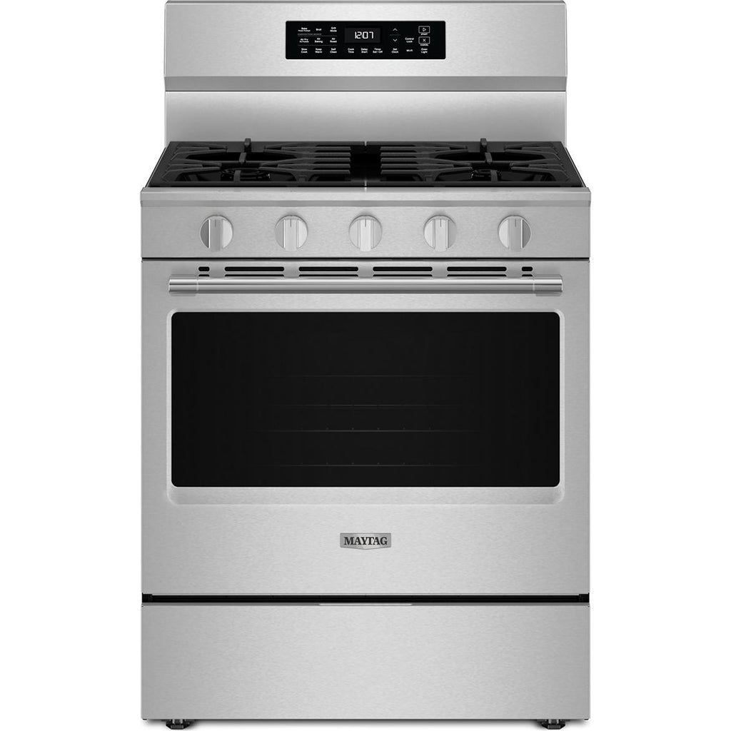 ×The Maytag 30-inch gas range delivers powerful performance with 5 versatile cooktop burners, a sleek digital display, and Air Fry technology—making it easy to cook crispy, delicious meals without the need for extra appliances.