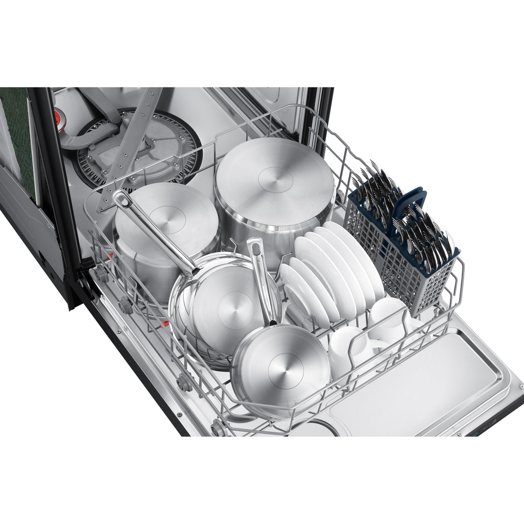 ×This Samsung 24-inch built-in dishwasher features 6 wash programs, 6 options, StormWash™ that gets the messiest pots and pans thoroughly clean without pre-washing and whisper-quiet cleaning.