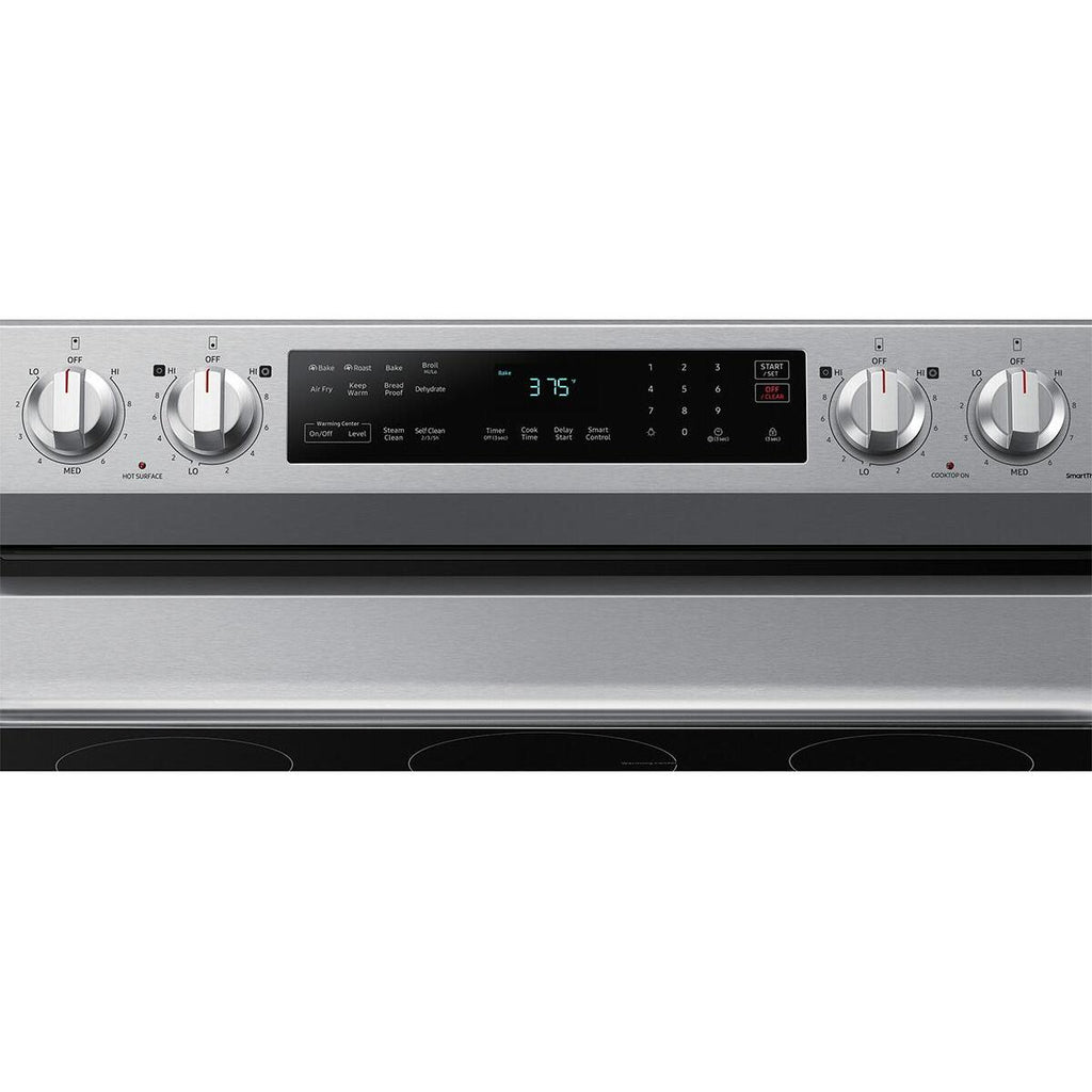 ×This Samsung freestanding electric range features WI-FI connectivity, Convection Technology, 5 cooktop elements and a total oven capacity of 6.3 cu.ft.