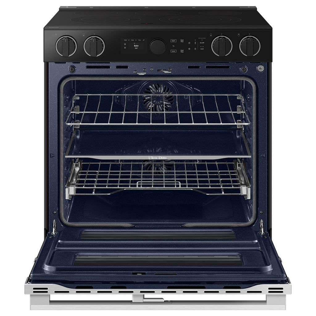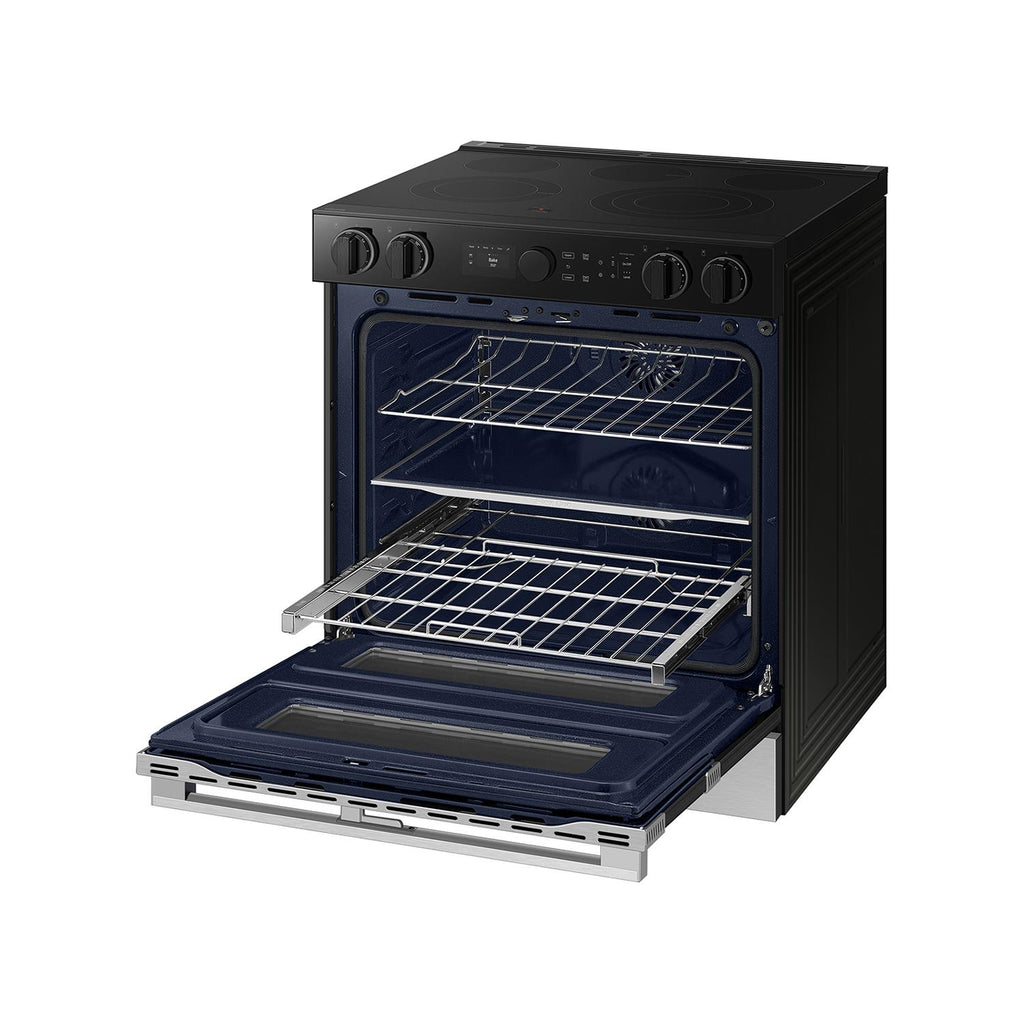×Samsung Bespoke Smart slide-in electric range features Flex Duo™, Wi-Fi connectivity, Air Fry technology and a total oven capacity of 6.1 cu. ft.