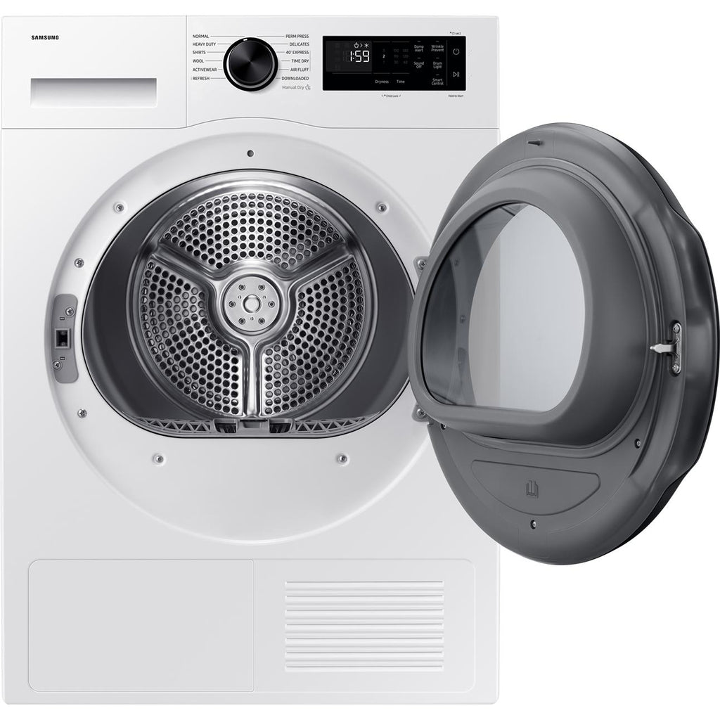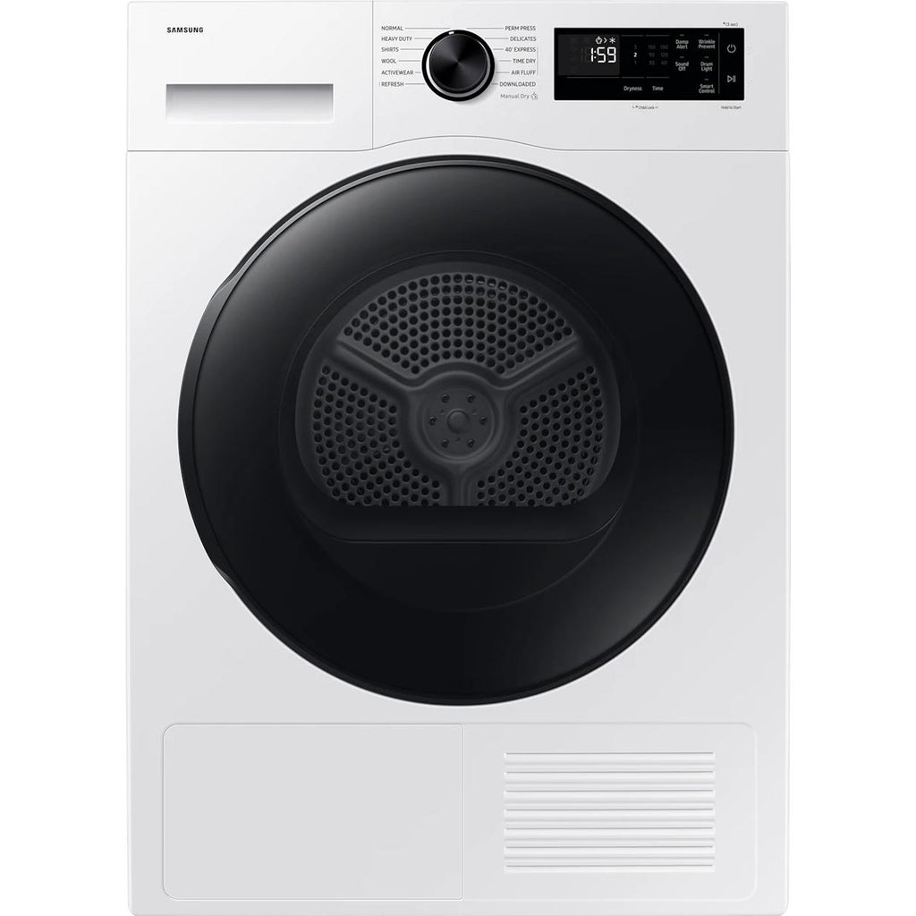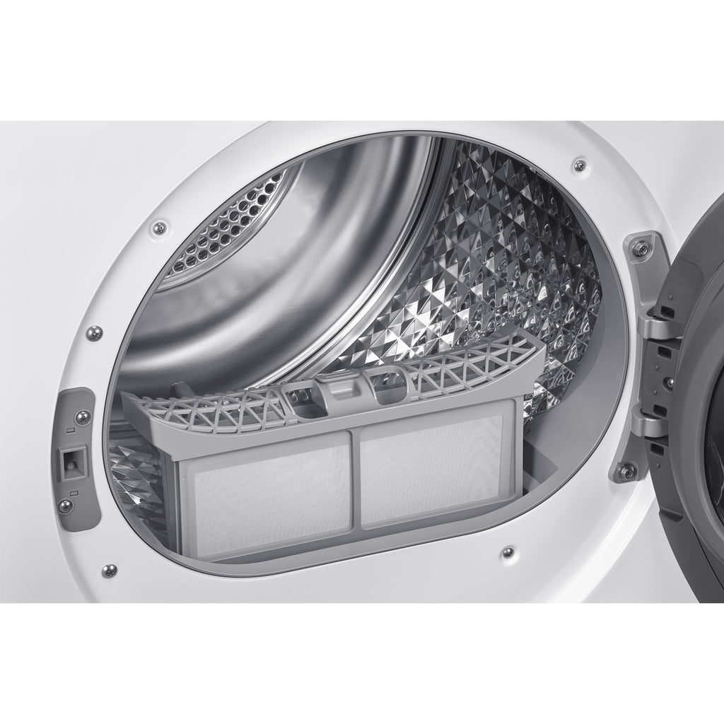 ×Samsung compact yet powerful dryer ideal for smaller laundry spaces. Featuring heat pump drying technology for greater energy efficiency, LED display, reversible door, and smart control capability, this model offers 12 drying cycles and multiple convenience features including Wrinkle Prevent, Damp Alert, and filter check indicator. ENERGY STAR® certified, it delivers excellent drying performance while reducing power consumption.