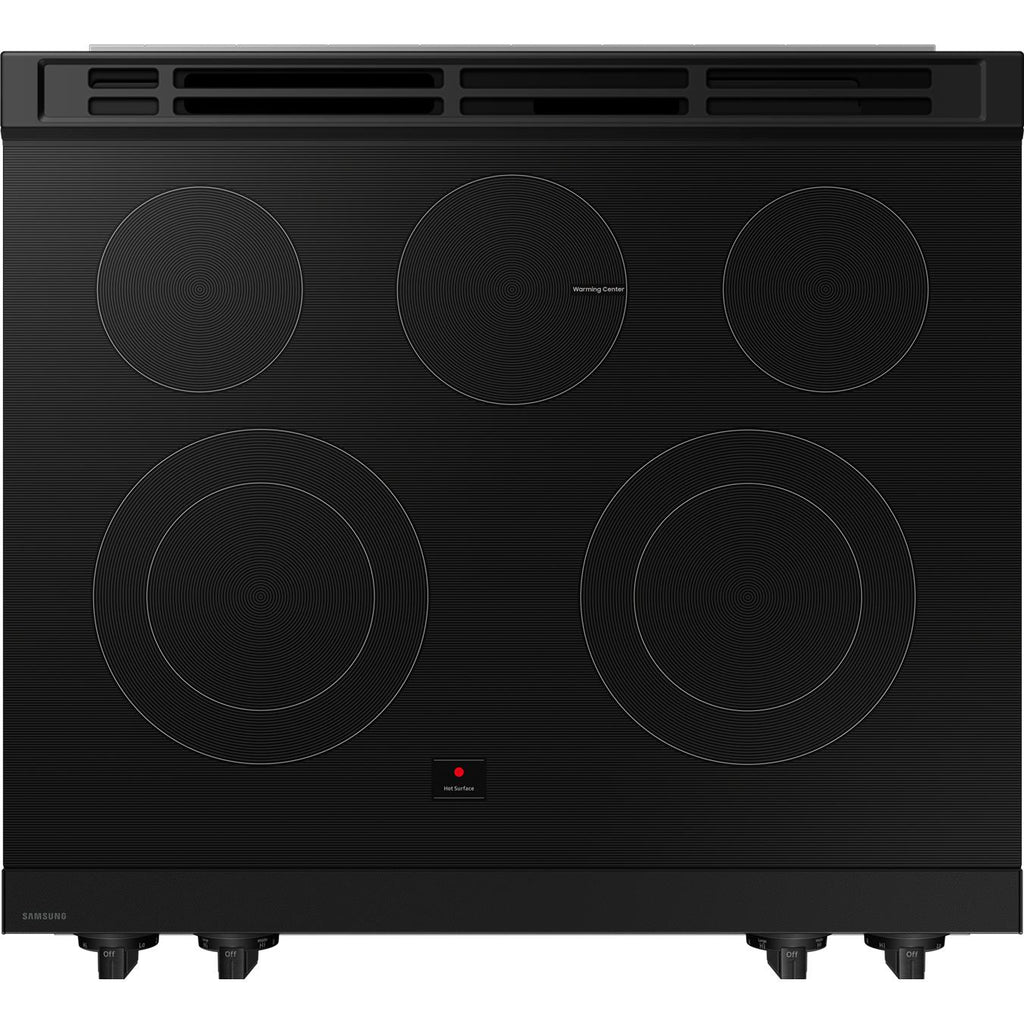 ×Samsung Bespoke Smart 6.3 cu. ft. Slide-In Electric Range featuring Precision Knobs and Glass Touch Controls. With Variable Broil and Wi-Fi Connectivity, this range offers versatile cooking options.