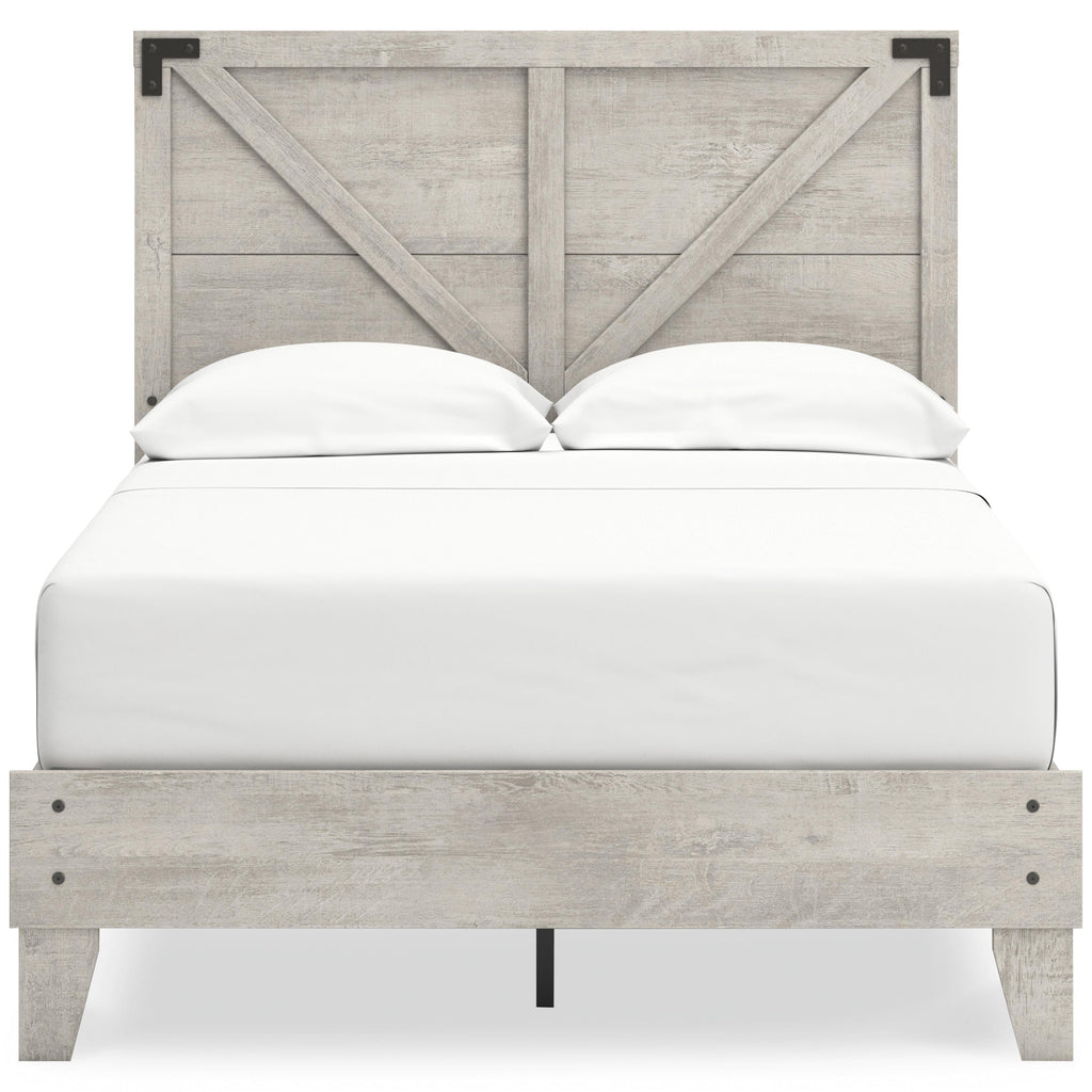 ×Give casual a new meaning with the chic look of the Shawburn full platform bed. A light gray finish over replicated oak grain keeps it laid-back and inviting, while crossbuck details and pewter-tone accents add a modern farmhouse touch. Talk about a delightfully relaxed vibe in your inner sanctum.