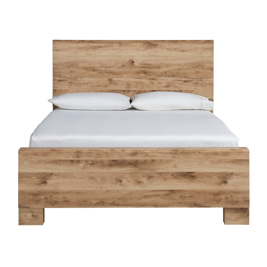 ×Inspired by natural beauty, refined to perfection. This king panel bed brings cozy outdoor vibes to your bedroom with its warm and inviting golden rustic finish. Simple and streamlined, the piece adds a subtle touch of authentic style to your space.