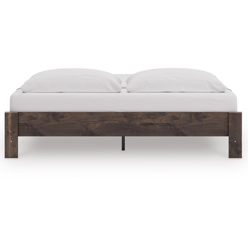×At the intersection of classic cool and chic sophistication you’ll find this king platform bed. The rich brown finish over replicated walnut wood grain offers an authentic touch that plays well any way you style it. Minimal yet elegant in its design, this bed keeps your home decor grounded while elevating your modern style.