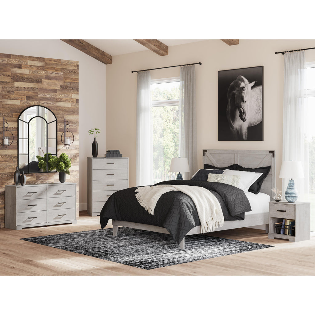 ×Give casual a new meaning with the chic look of the Shawburn chest of drawers. A light gray finish over replicated oak grain keeps it laid-back and inviting, while substantial pulls in a warm pewter tone add a modern farmhouse touch. Spacious drawers give you plenty of room to store your wardrobe. Talk about a delightfully relaxed vibe in your inner sanctum.