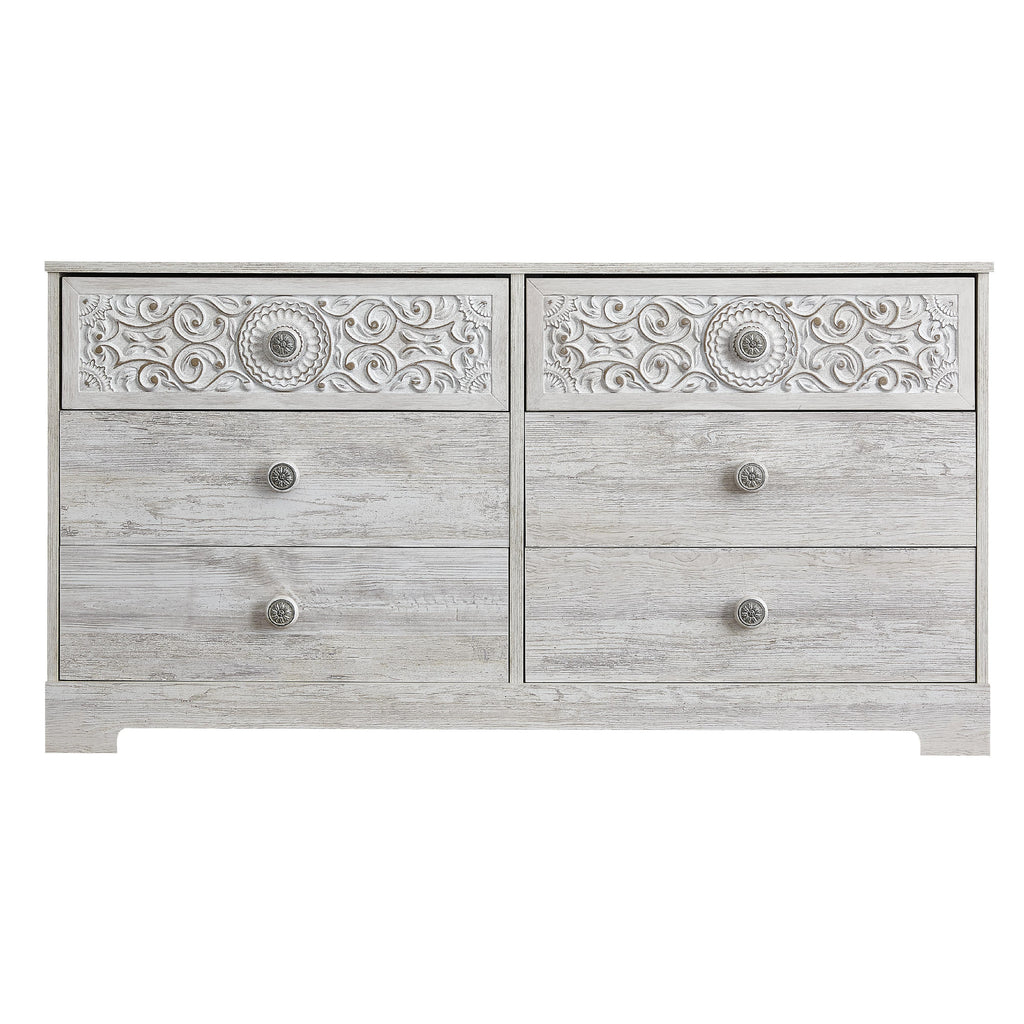 ×If it's coastal chic or cottage quaint style you long for, this whitewashed dresser invites you to go to town. Its distinctive weatherworn finish conveys an easy-breezy sensibility, perfect for a restful bedroom retreat. Tastefully edited lines and medallion drawer pulls give this attractively priced dresser a high-end aesthetic.