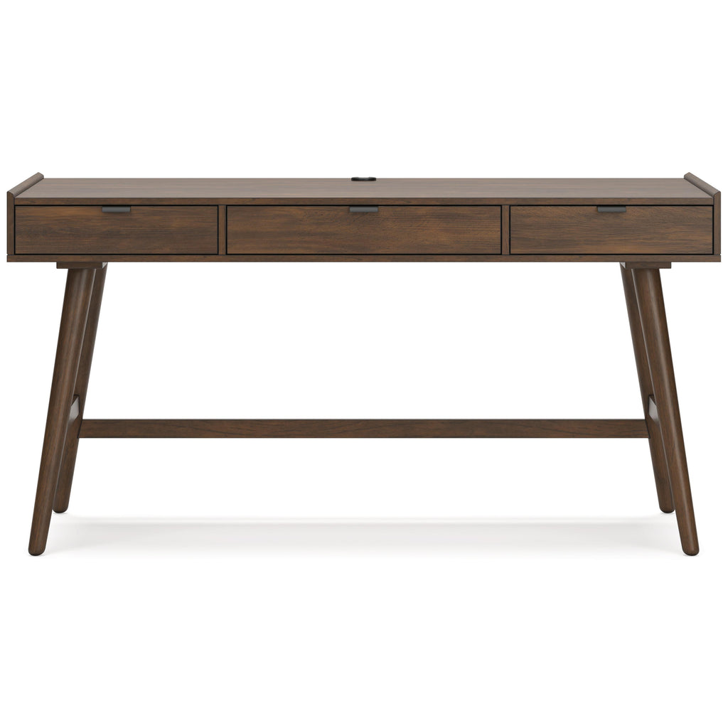 ×A refreshed take on retro aesthetics. This home office desk adds an air of playful simplicity to your workspace, capturing the architectural language of mid-century stylings. Subtle in design, it invites the eye with a sleek, open frame. A casual, yet timeless, finish and three storage drawers complete this study in form and function.