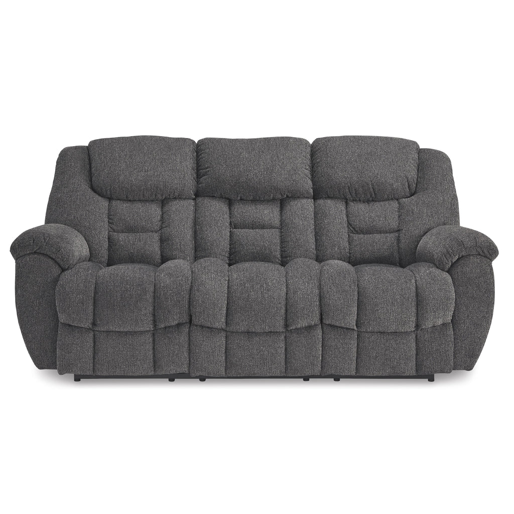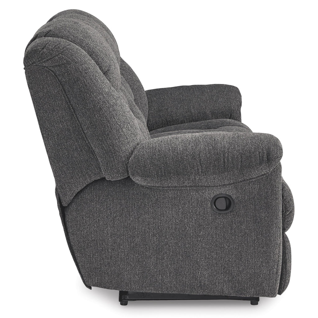 ×Sometimes seeing is believing. And you can rest assured that this reclining sofa is every bit as indulgent as it looks. Designed to put you in the lap of luxury, the generously scaled seating—wrapped in plush and practical Next-Gen Nuvella™ upholstery—sports pillow-wrapped armrests and curvaceously cushioned head-neck support for feel-good flair.
