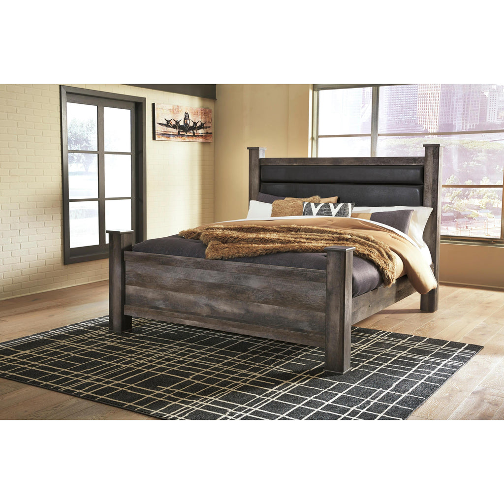 ×This bedroom set is sure to win your heart with its daring, designer take on modern rustic. The collection’s crisp, clean and minimalist-chic profile is enriched with a striking replicated oak grain with thick plank styling and a weathered gray finish for that much more authentic character. Large-scale hooded pulls gracing the flush-mount drawers add such a distinctive twist. This set includes a king poster headboard, footboard and rails as well as a dresser and mirror.