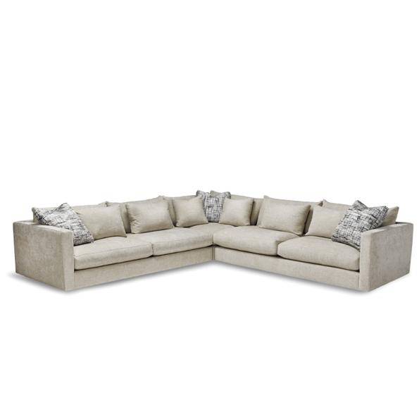 ×The Haze Sectional by Stylus Sofas features track arms and padded back and seat cushions. This sectional comes in a sandstone colour. It is made of comfortable fabric and is an elegant piece in any living room.