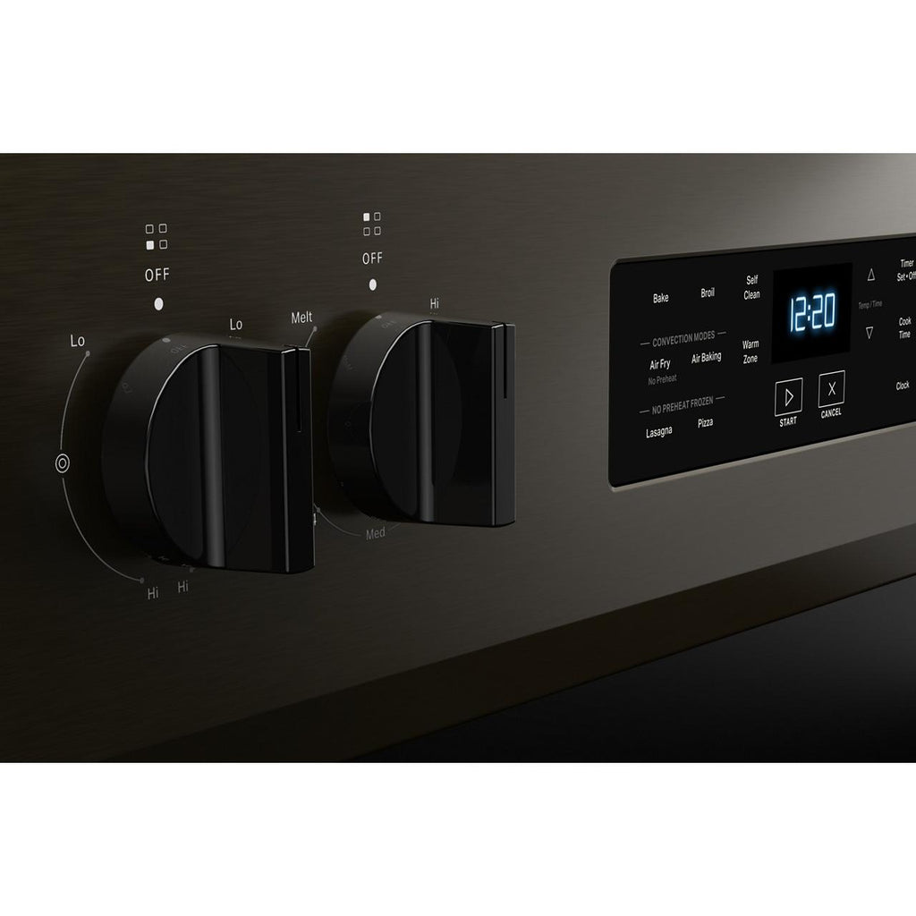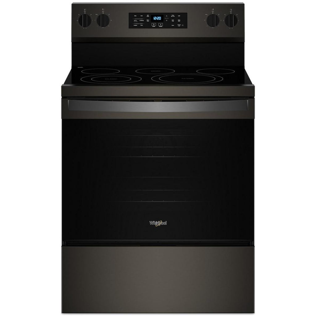 ×This Whirlpool® 30-inch electric range features air fry and air baking, self cleaning, a rapid preheat function, and a 5.3 cu. ft. capacity.