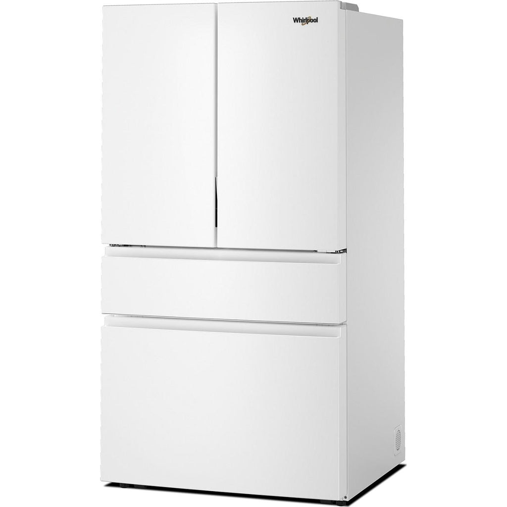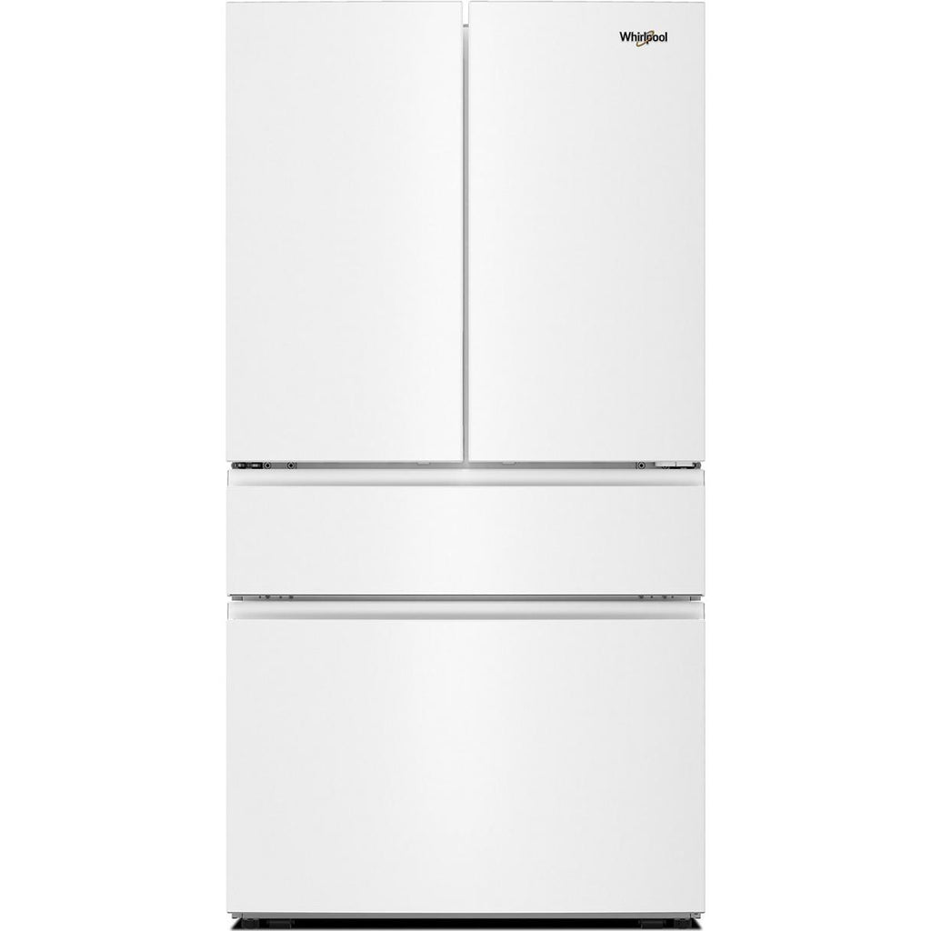 ×Whirlpool 36-inch french 4-door refrigerator with crisper drawers and glass shelves.