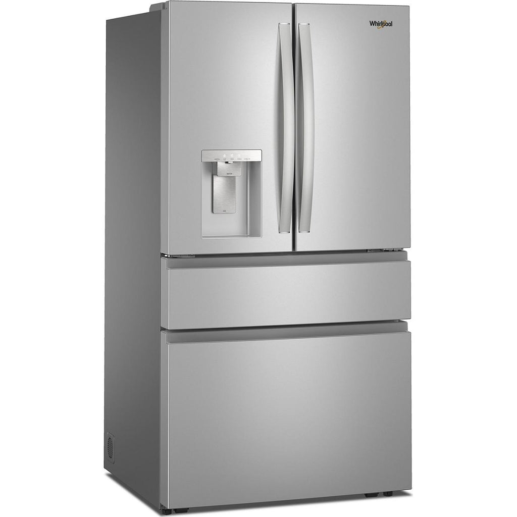 ×Whirlpool 36-inch french 4-door refrigerator with external water and ice dispensing system.